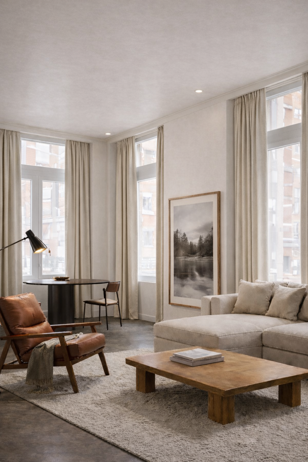 As proporcións do baixo, cos seus casi 4 metros de altura, suxiren un espacio único, ou “habitación grande” á maneira dos palazzos italianos, na que ter acceso indiviso a luz, ventilación, e amplitud .
